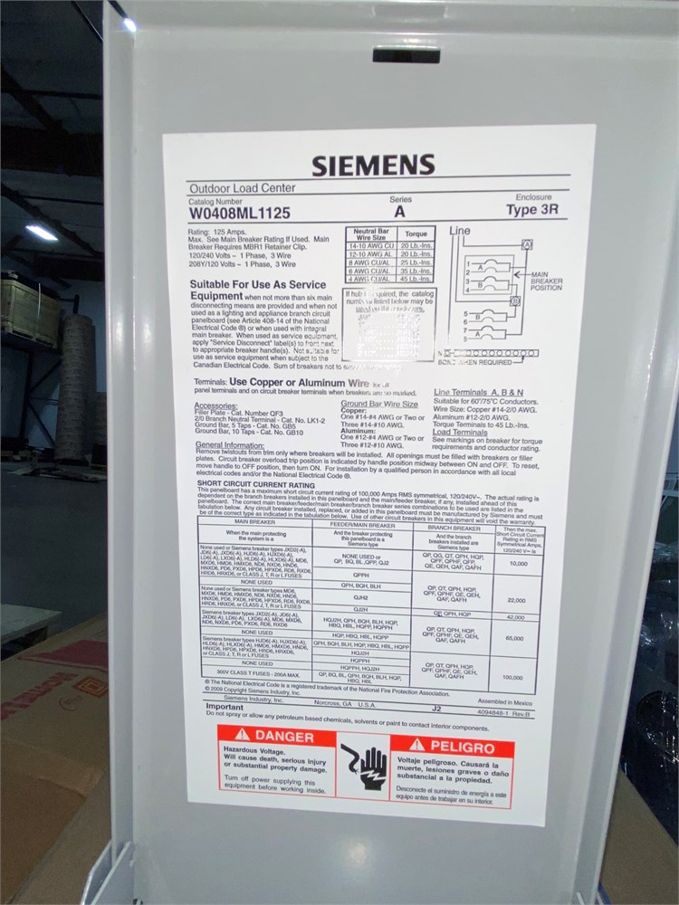 Outdoor Load Center, 150A, 4 Circuit, 120/240V, Single Phase, Enclosed EQ Series