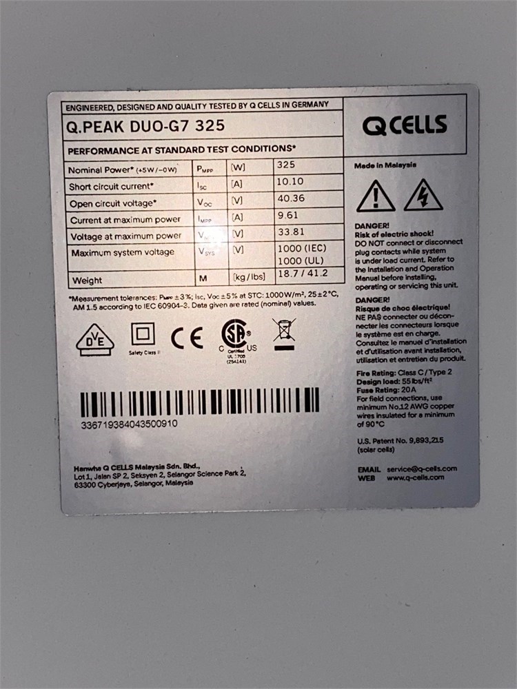 - The Q.PEAK DUO G5 DUO 325 has a 19.3% module efficiency.
